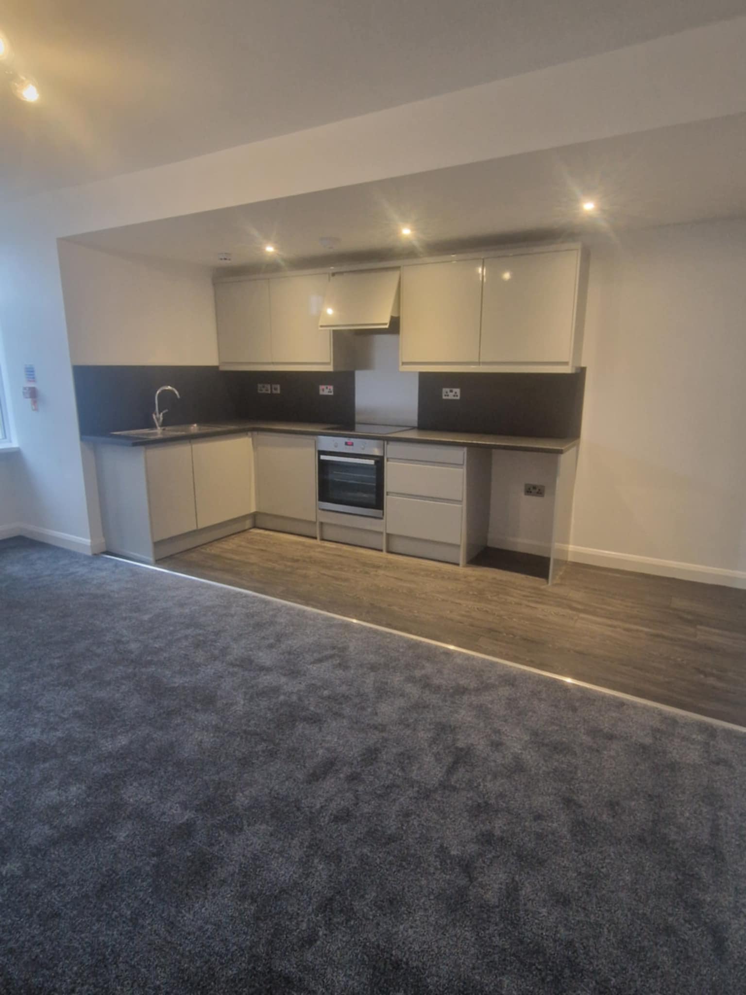 • Open-plan kitchen with integrated oven and hob